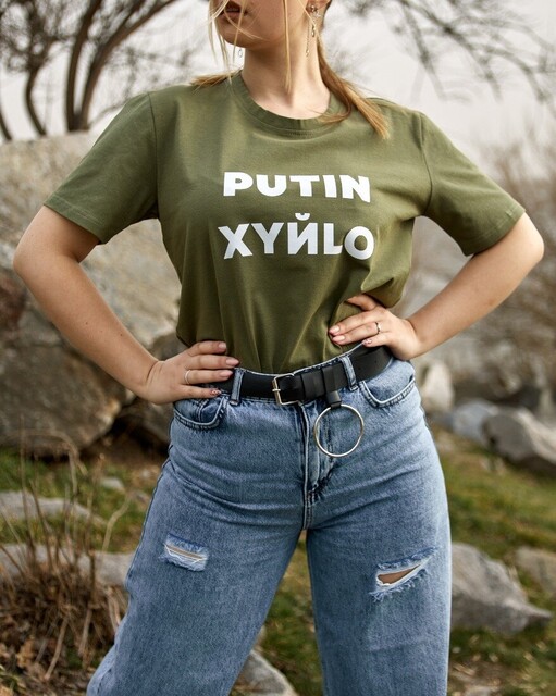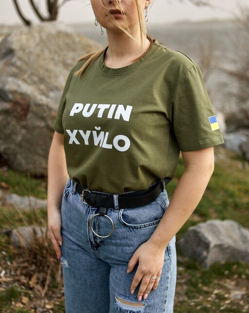 Футболка жіноча з написом. Хакі